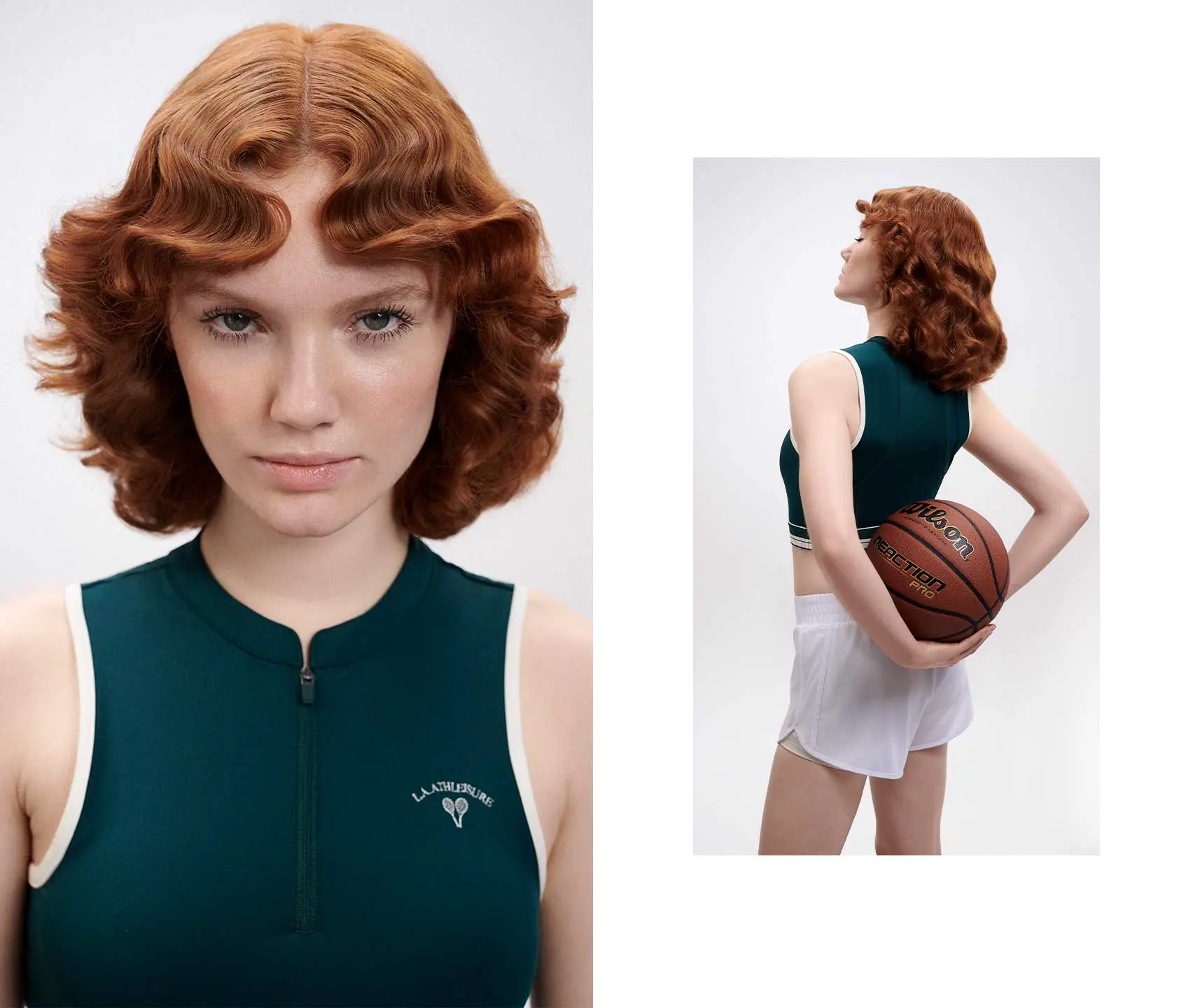 Natürliche, weich texturierte Wellen geben dem schulterlangen Look seine tragbare Lässigkeit, die in der Day-Variante mit den im Stil der 1940er Jahre und mithilfe von Curl Defining Styling Fluid definierten Wellen im Ponybereich kontrastiert. Sanft ineinanderfließende Kupfer- und Rottöne bringen die Textur der Haare lebendig zur Geltung und ergeben eine natürlich wirkende Statement-Farbe mit gesundem Glanz. Einen komplementären Fokus setzt der mit Perfect Style Evergreen üppig getönte Wimpernkranz.